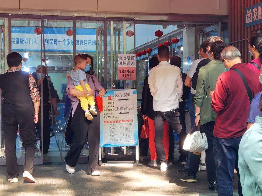 郑州街头排队打疫苗场景